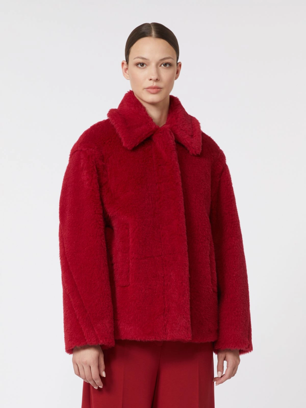 Crop-Mantel aus Teddy, Alpaka und Wolle - Rot