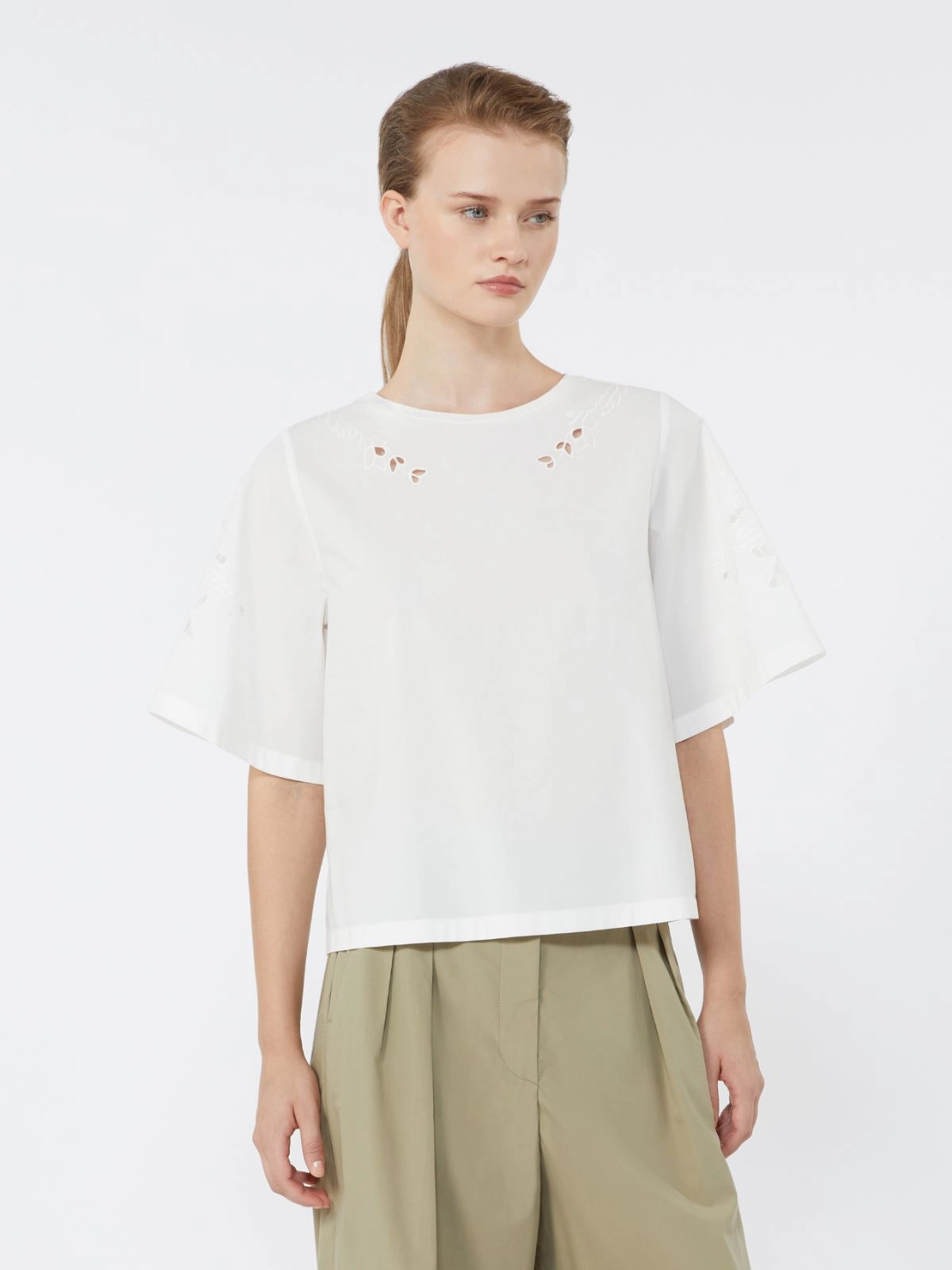 Oberteil aus Baumwollpopeline mit Stickereien + WEISS - Max Mara